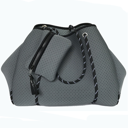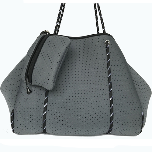 This new fashion neoprene tote bag is made from perforated neoprene fabric supported by high performance sailing rope. Sailing rope allows the neoprene to maintain its beautiful softness whilst providing support to fill it to capacity. It's the ideal travel companion whether it be everyday or away and the internal pouch keeps your valuables safe.